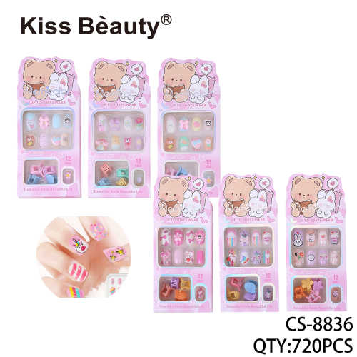 Uñas postizas infantiles con diseños divertidos y coloridos.